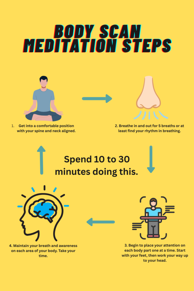 Body scan meditation is a way of giving attention to the body. Meditation is healing and has a calming effect on the mind. The mind can wander in meditation, and there is nothing wrong with that. However, this practice allows someone to instill calmness and regain control. This is a great way to do a self-check-in. Meditation has been a long practice and has been a remedy for inner instability. The length of time for the practice is not what many should focus on, but the effectiveness of the session.